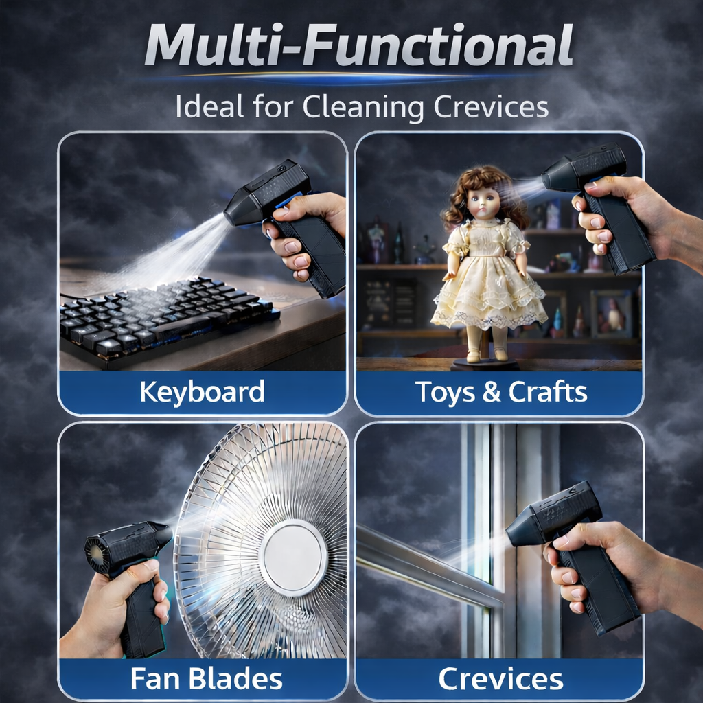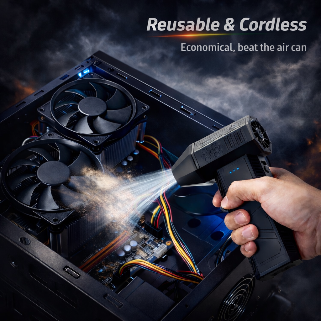 Customers love this electric air duster because it makes cleaning fast, powerful, and effortless. Instead of wasting money on disposable air cans or struggling with weak airflow, they get a rechargeable, high-speed tool that removes dust in seconds. It protects their expensive electronics, saves time, and works anywhere — from keyboards and PCs to car interiors. Plus, it’s cordless, reusable, and eco-friendly, making it a smart upgrade they’ll wish they bought sooner.